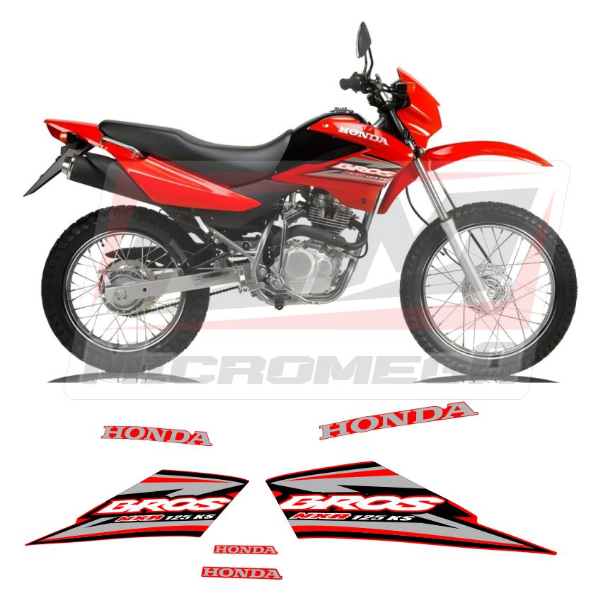 Kit de Calcas Sticker Calcomanías Honda Xr Bros 125 2009 diseñadas para restauración, fabricadas con los detalles y dimensiones de las originales.