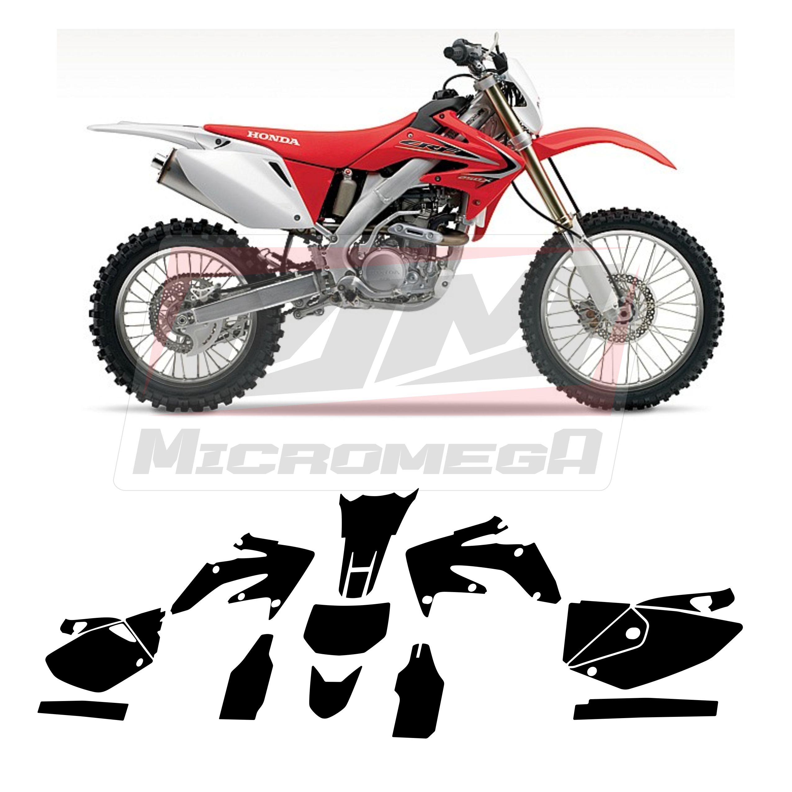 Esta Plantilla Vectorizada Honda Crf 250x 04-12 es fácil de usar. Simplemente se puede imprimir y utilizar para diferentes propósitos relacionados con la moto, como dibujar diseños, hacer calcomanías, decorar, entre otros.