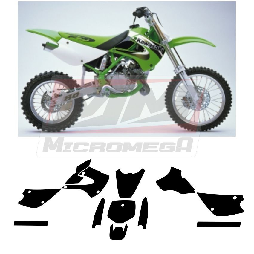 kit de Plantilla Vectorizada Kawasaki Kx 80 98-04 escala real, contiene las partes esenciales para diseñar tus gráficos personalizados muy fácil. Disponibles en formato .epc o .cdr